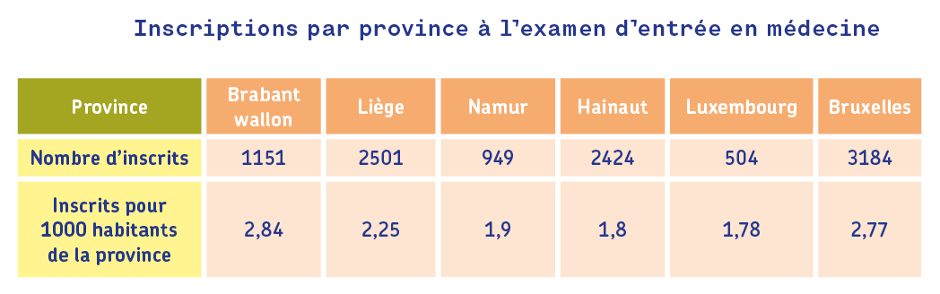 La province la plus riche envoie proportionnellement plus de candidats que les plus pauvres, telles que le Hainaut ou le Luxembourg, qui sont les provinces subissant le plus la pénurie de médecin (Voir tableau).